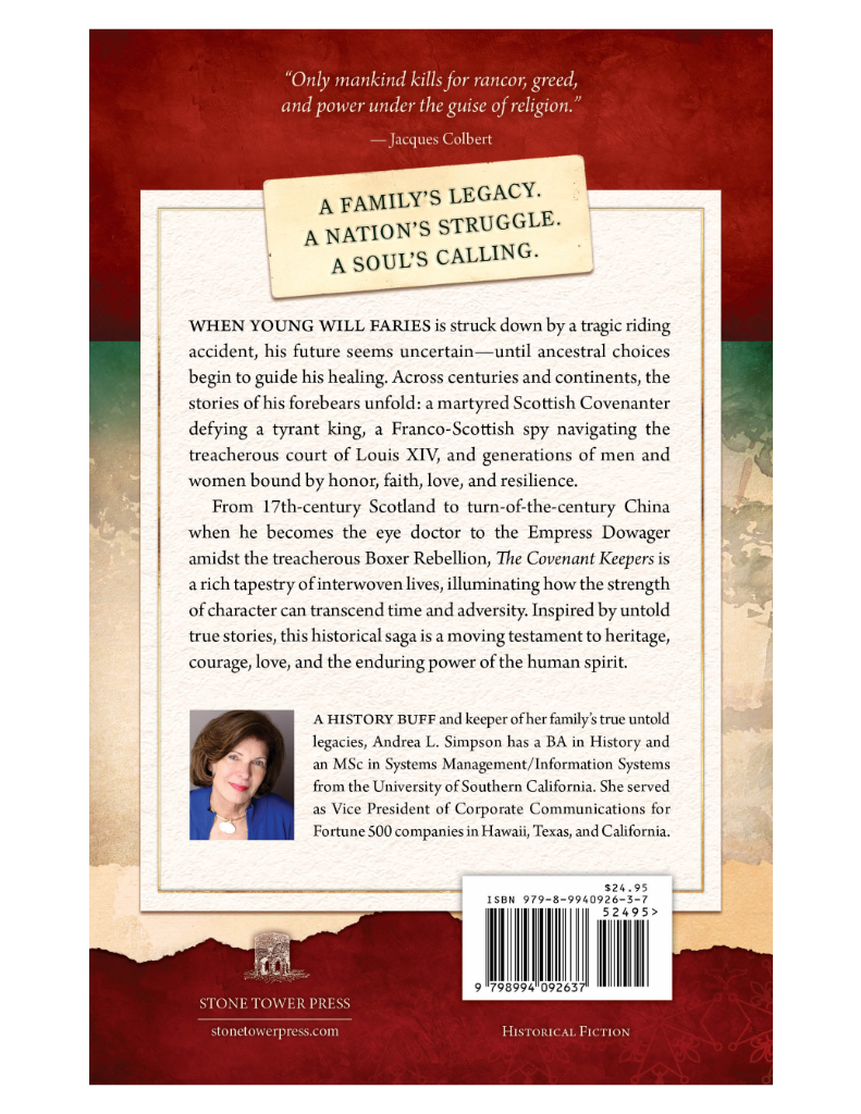 From martyrdom in Scotland to survival in China, one family’s legacy spans continents and centuries. Through richly drawn characters and meticulous detail, The Covenant Keepers weaves an epic tapestry of faith, justice, and moral courage. A multi-generational odyssey of conviction, sacrifice, and unyielding faith, The Covenant Keepers is a hauntingly beautiful narrative that reveals how every life is part of a greater story. It’s an unforgettable journey across time and cultures for readers who believe that history—and the human spirit—always matters.